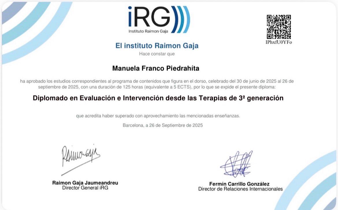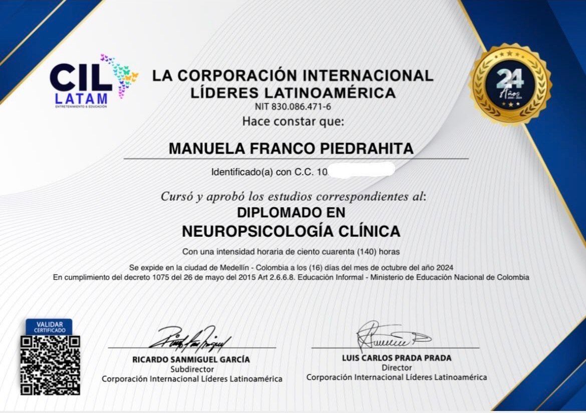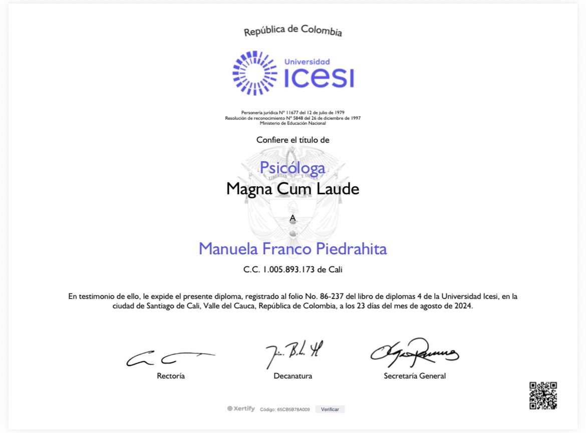 Cuento con experiencia en práctica clínica hospitalaria y ambulatoria. He trabajado como practicante en la Fundación Valle del Lili, como profesional en Impronta IPS, y en consulta privada, tanto presencial como virtual.