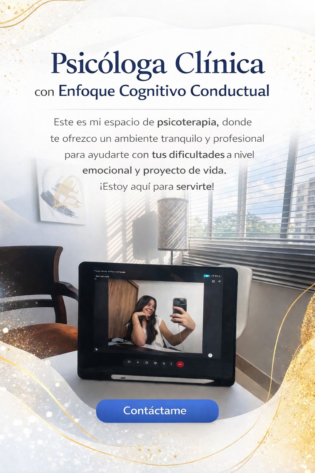Soy psicóloga clínica con enfoque cognitivo-conductual. Acompaño procesos terapéuticos orientados a la comprensión emocional, el cambio de patrones de pensamiento y conducta, y el fortalecimiento del bienestar psicológico.